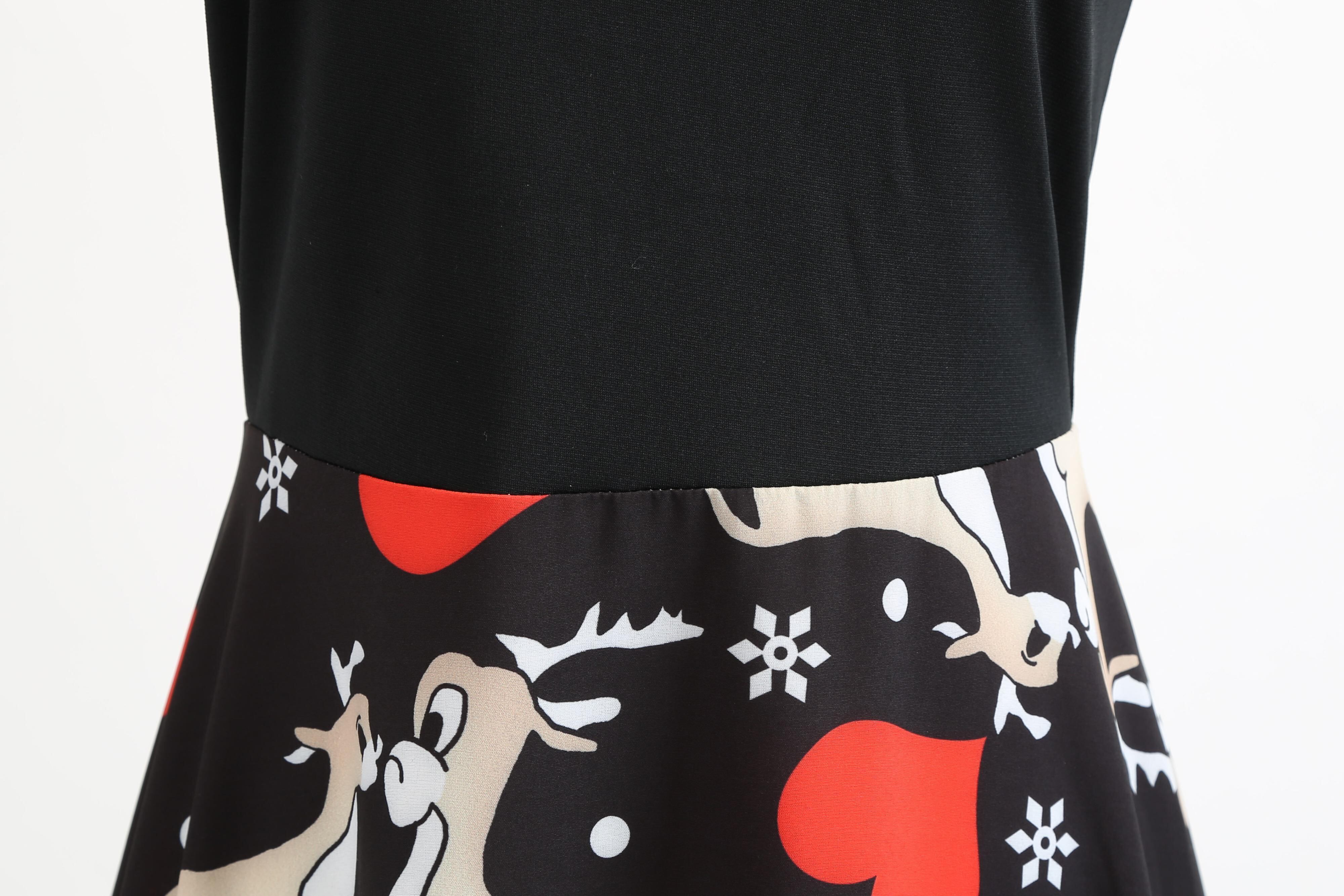 AliExpressの新しいクリスマスファッションプリントステッチ長袖スウィングドレスでリボンを送る ロング 6733049278368130