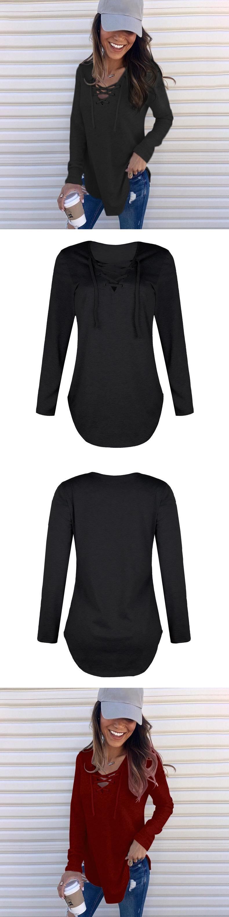 アマゾンで人気の無地VネックストラップルーズトップTシャツレディーストレンドを販売するヨーロッパとアメリカンスタイルのファッション ソリッドカラー ヨーロピアン 673305227028783