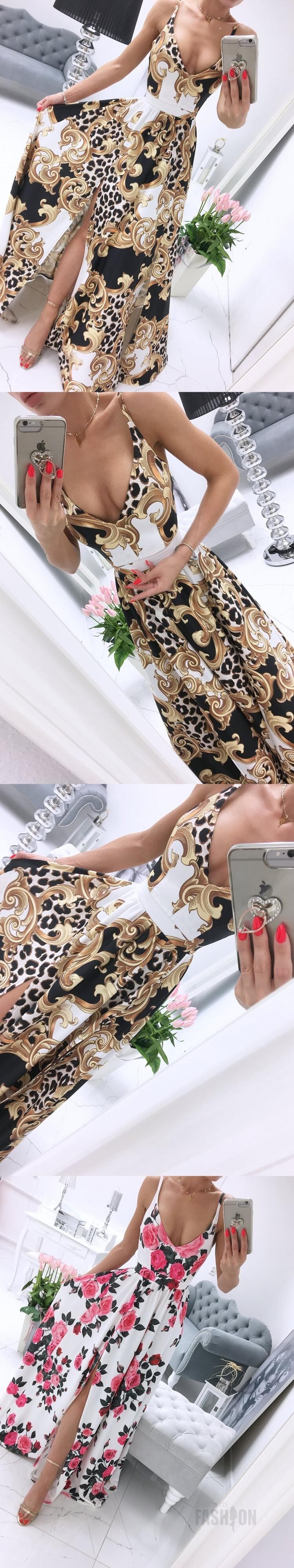 女性夏マキシロングドレスセクシーなヒョウ柄フローラルベストドレススリットロングスカート サマー 夏物 花柄 6733021212796097