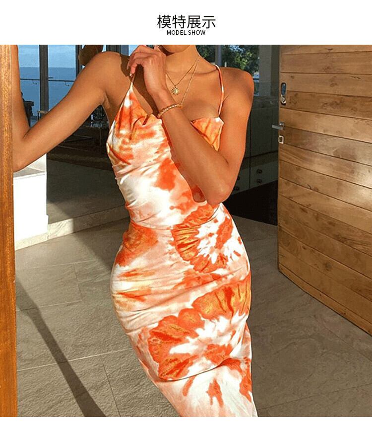 ヨーロッパとアメリカのクロスストラップオープンバックショー薄いロングスカート絞り染めバッグヒップセクシーウエストスリムサスペンダードレス夏 サマー 夏物 6733025674942320