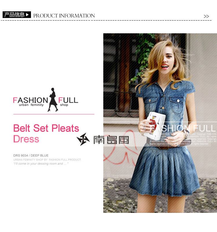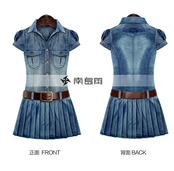 半袖デニムワンピース欧米夏新作ファッションレトロラージサイズファットMMスリムスリムプリーツスカート 大きめサイズ サマー 夏物 6733016525593062