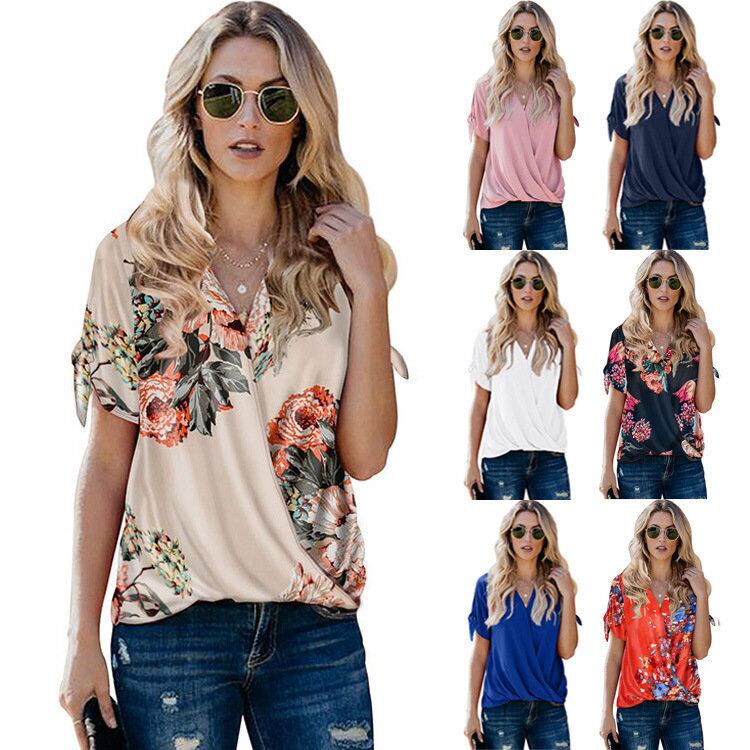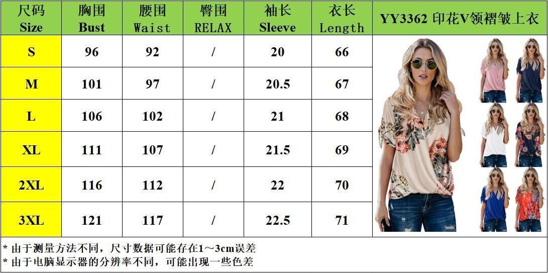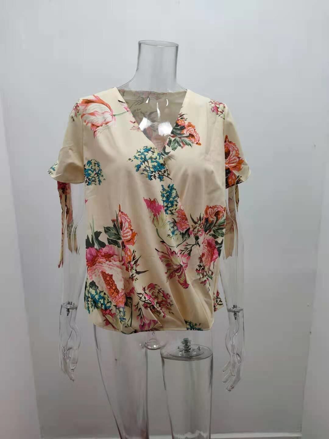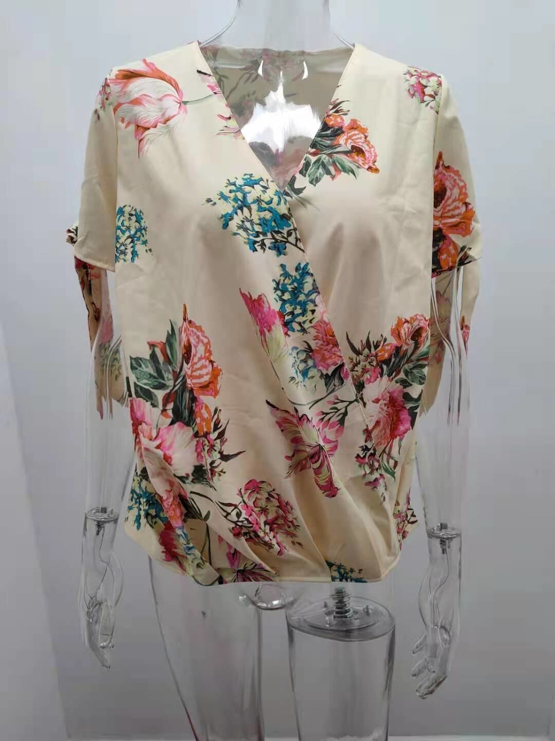 ヨーロッパとアメリカのファッションVネックシャツレディース2021年夏の新しいアマゾンプリントルーズプリーツプルオーバートップ サマー 夏物 ヨーロピアン 6733063766018945