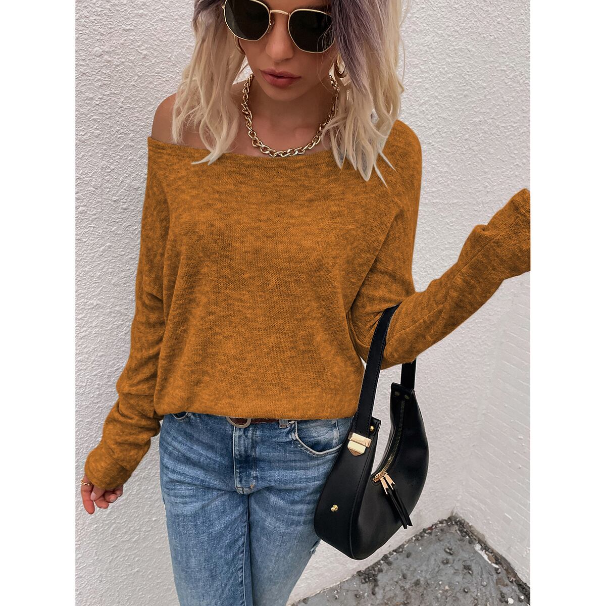 ヨーロッパとアメリカンスタイルのファッション気質AliExpress新しいAliExpress傾斜ショルダートップニットウェア女性の潮流 ヨーロピアン 6733095693726181