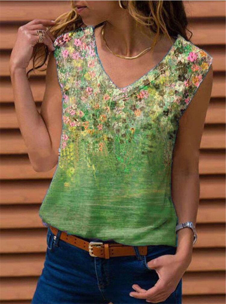 ヨーロッパとアメリカの国境を越えた希望アマゾン独立局春と夏の新しいVネック印刷ノースリーブベスト女性のトップトレンド スプリング 春物 サマー 夏物 ヨーロピアン 6733073394858728