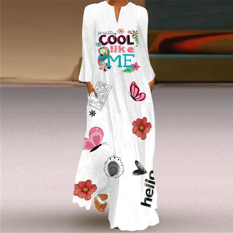 独立した秋と冬のヨーロッパとアメリカのファッションセクシーな新しいVネック長袖プリントロングスカートルーズヨーロッパとアメリカのプリントドレス オータム 秋物 ウィンター 冬物 ヨーロピアン 6733015901362682