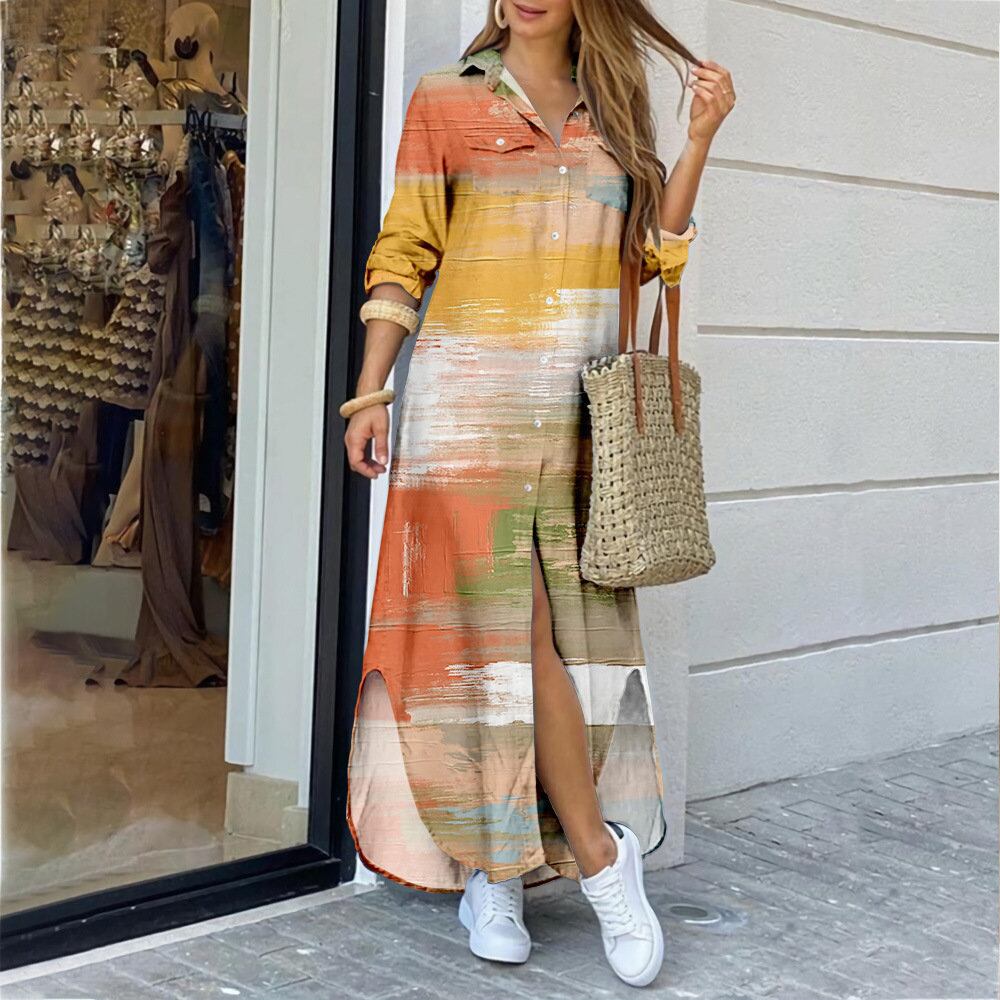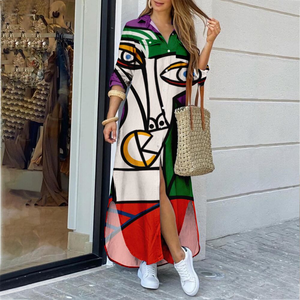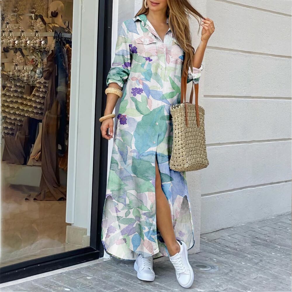 春の新しいヨーロッパとアメリカンスタイルの気質クロスボーダーレディースシャツロングスカートルーズカジュアルフローラルプリントファッショントレンド スプリング 春物 花柄 ヨーロピアン 6733017648042618