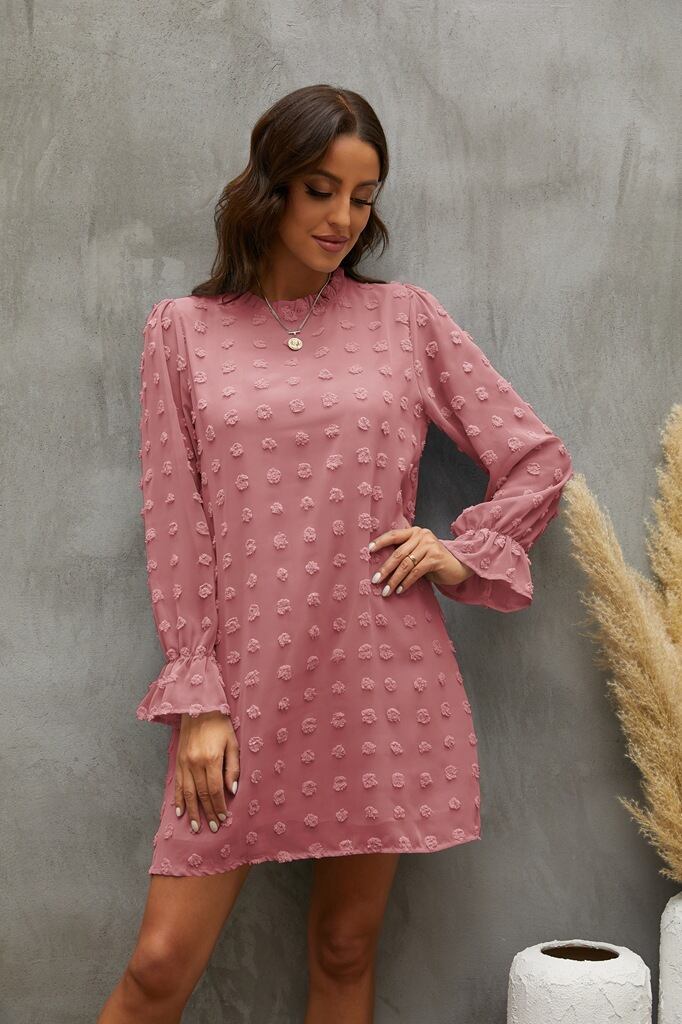 ヨーロッパとアメリカのスタイルのアマゾンの女性の春と秋の新しいセミハイカラーのルーズスイングスカートジャカードドレスのトレンド スプリング 春物 オータム 秋物 ヨーロピアン 6733061270750858