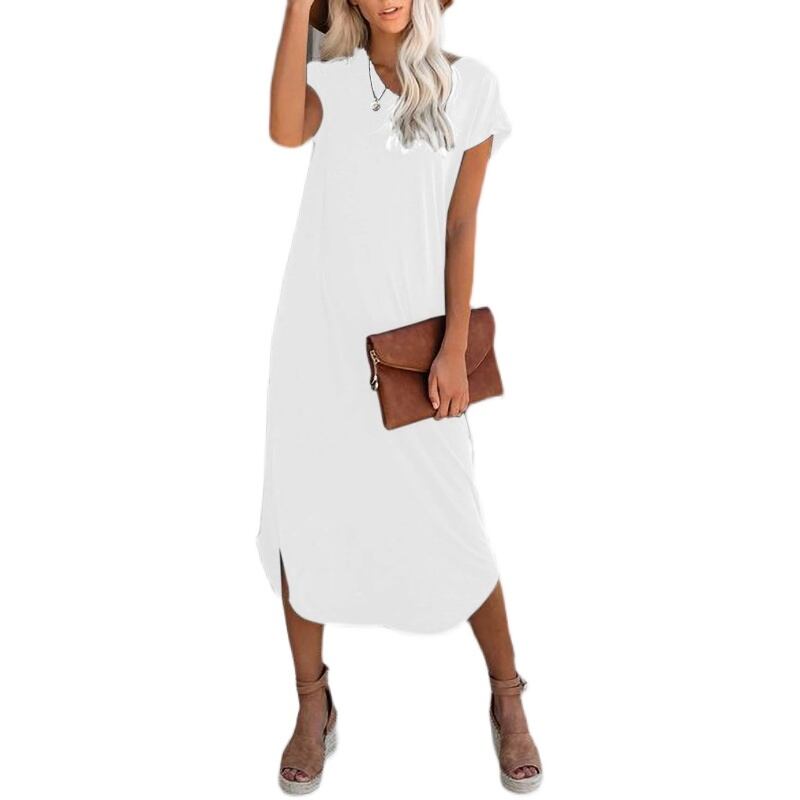 インディペンデンスステーション2022ヨーロッパとアメリカンスタイルの新製品がセクシーなVネックの無地のレトロな半袖ミドル丈ドレスをトレンディに販売 ソリッドカラー ヨーロピアン 6733041887641758