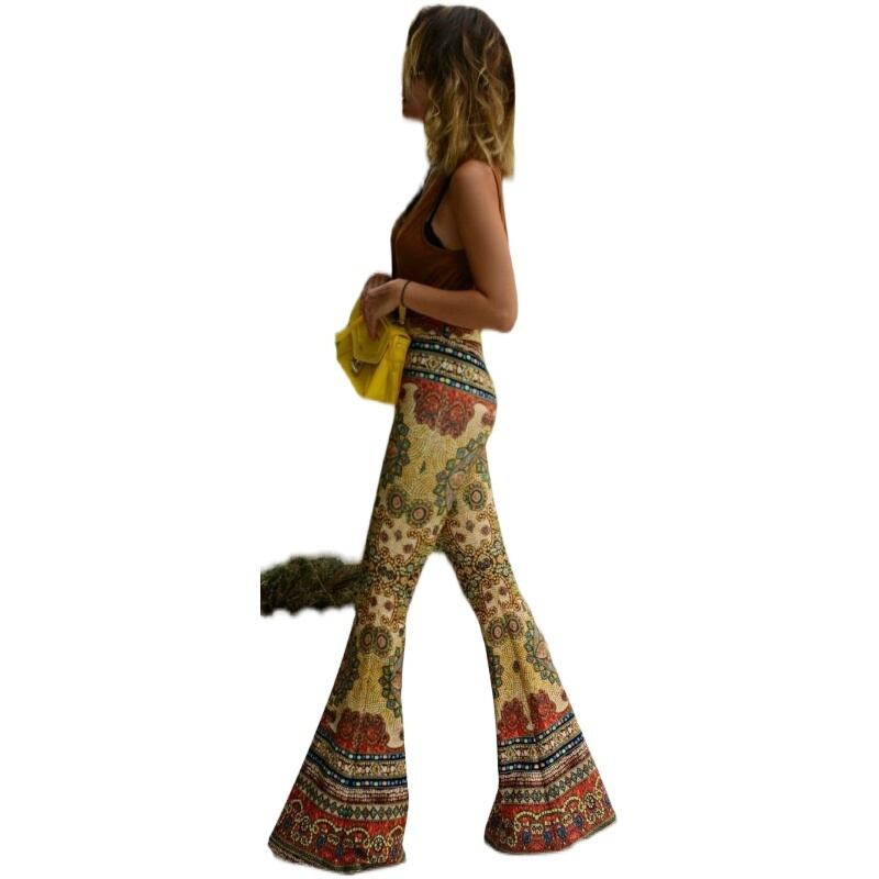 ヨーロッパとアメリカのトレンディなスキニーバッグヒップレトロプリントマイクロフレアパンツプリントフレアパンツ レッド ヨーロピアン 6733070118758053