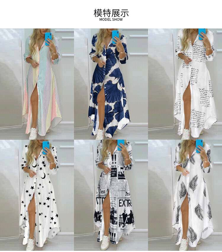 春の新作ファッション気質売れ筋ヨーロッパとアメリカのプリントボタンシャツ長袖気質ドレスレディースファッションドレス ロング スプリング 春物 ヨーロピアン 6733028671361603