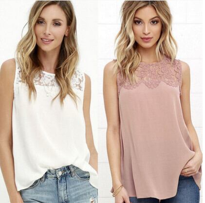 春と夏の新しいファッションヨーロッパとアメリカのeignトレードオールマッチ無地レギュラーホワイトパウダーステッチレースシフォントップノースリーブシャツ スプリング 春物 サマー 夏物 ソリッドカラー ヨーロピアン 6733052263520158