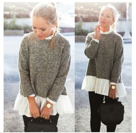2016年秋ヨーロッパ・アメリカンスタイルファッションルーズニット長袖ステッチ裾ネックライン袖口フリル ロング ラッフル オータム 秋物 ヨーロピアン 6733032040930614