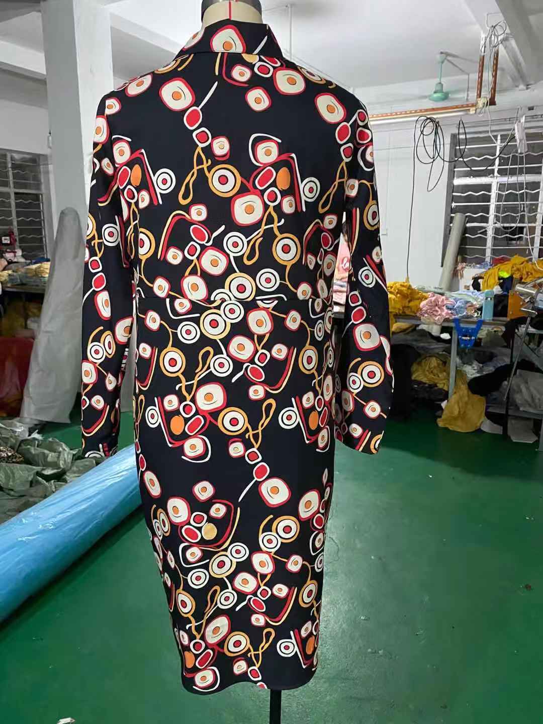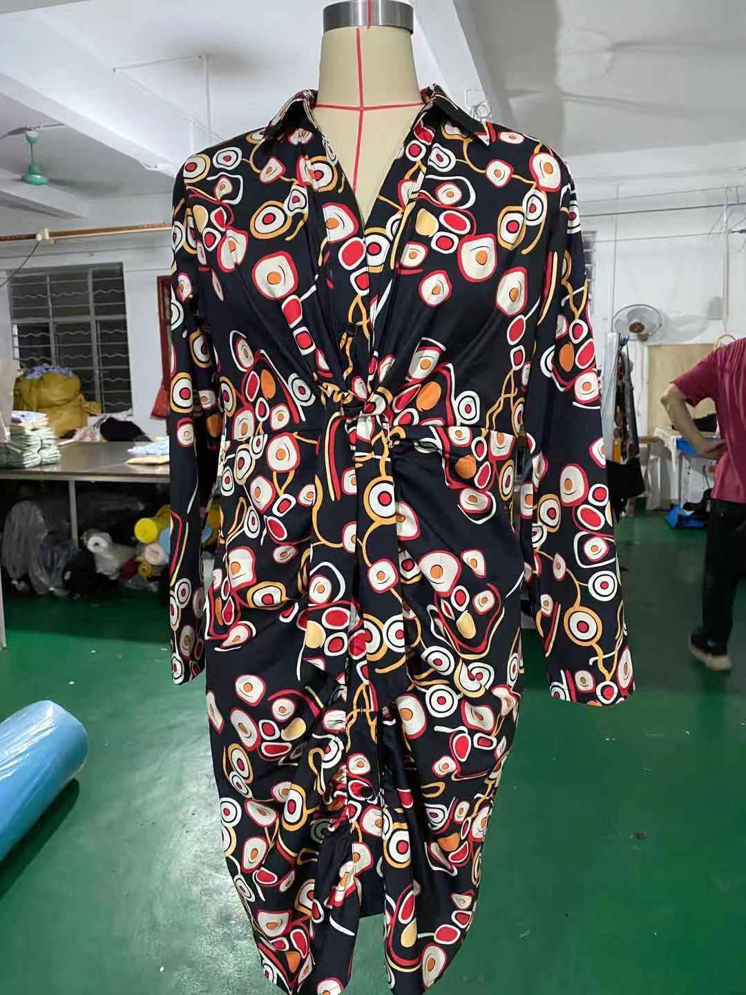 春夏アマゾンAliExpressセクシーなVネックネクタイプリント長袖シャツドレスタイド ロング スプリング 春物 サマー 夏物 6733026238231814