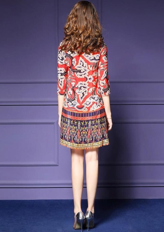 AliExpressの新しい春と夏ヨーロッパとアメリカのストリートラウンドネックレトロデジタル印刷オールマッチ七分袖Aラインドレス スプリング 春物 サマー 夏物 Oネック ヨーロピアン 6733019617368191