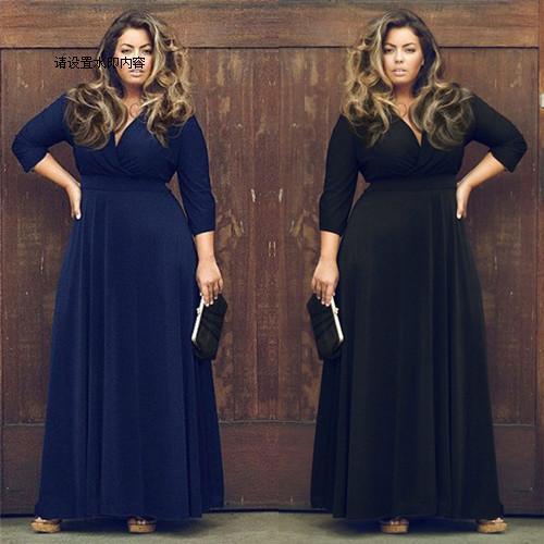 ヨーロピアンとアメリカンスタイルのサマーファッション新しいVネックレディースプラスサイズファットMMディープVソリッドカラープルオーバーラージスイングスカートマルチカラーオプション 大きめサイズ 夏物 6733059672124092
