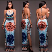 夏のヨーロッパとアメリカのドレスセクシーなサイドスリットウエストホロープリント サマー 夏物 ヨーロピアン 673304576003213