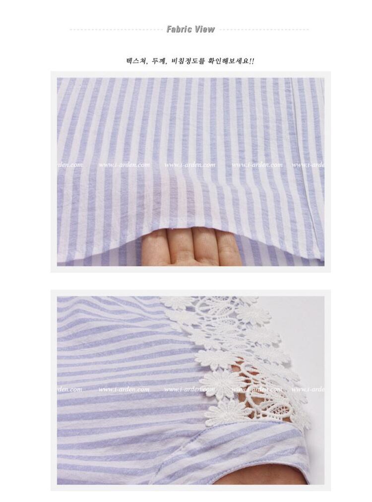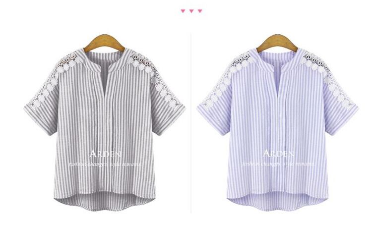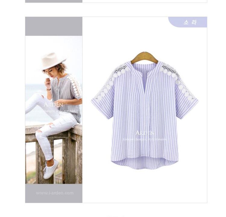 夏のファッション新しいヨーロッパとアメリカの大きなサイズの女性のシャツ太った姉妹ストライプルーズ半袖レースレースTシャツ 大きめサイズ サマー 夏物 ヨーロピアン 6733055531004744