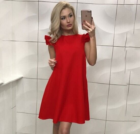 夏のファッションヨーロッパとアメリカの新しいeBayAliExpress人気のファッションシンプルなしわのある蓮の葉の袖の大きなスイングドレス サマー 夏物 ヨーロピアン 6733035182196558