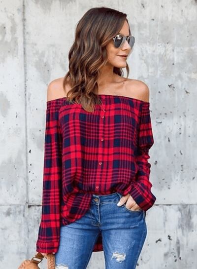 eBayAliExpress春と夏のファッションヨーロッパとアメリカの新しいセクシーな襟の格子縞のシャツのトップス スプリング 春物 サマー 夏物 ヨーロピアン 6733027722596610