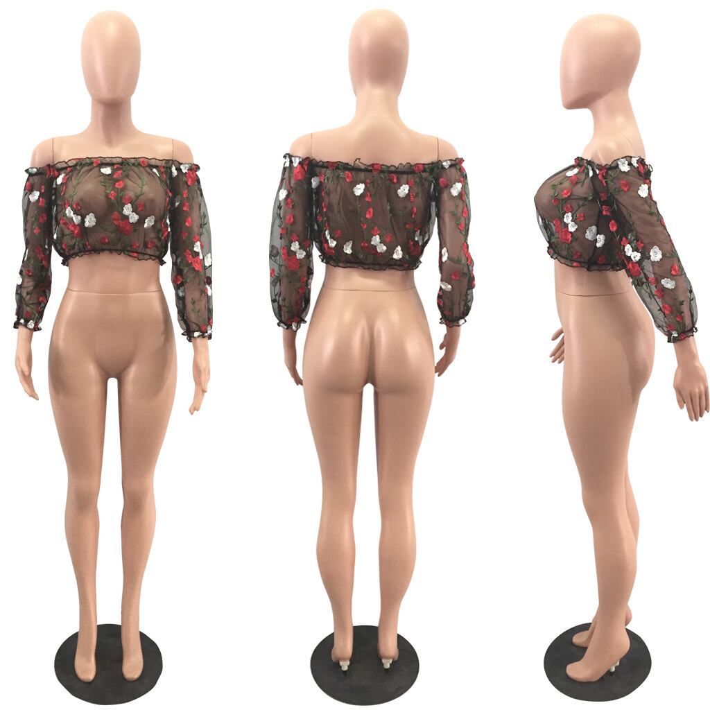 AliExpressebayヨーロッパとアメリカンスタイルの春と夏のファッションセクシーな女性のメッシュ刺繡ワンショルダートップ 刺繍 スプリング 春物 サマー 夏物 ヨーロピアン 6733056143931026
