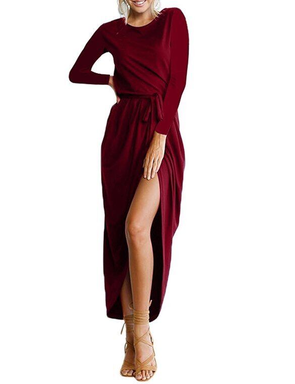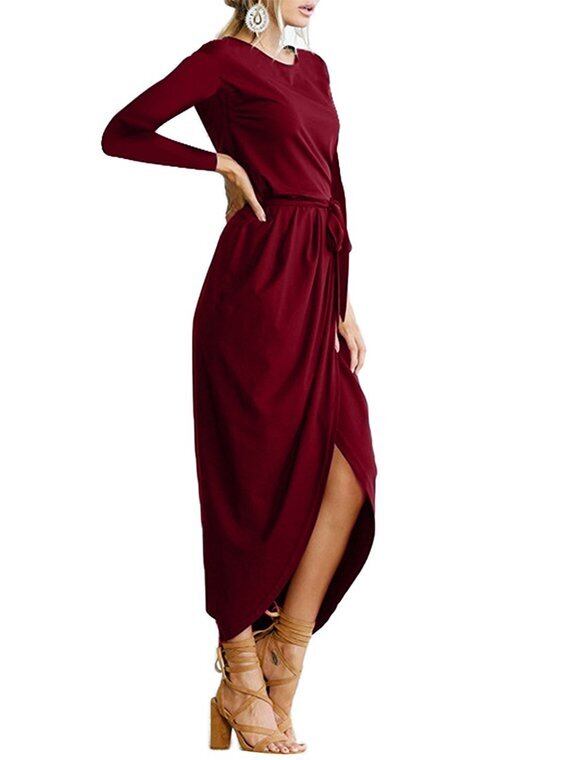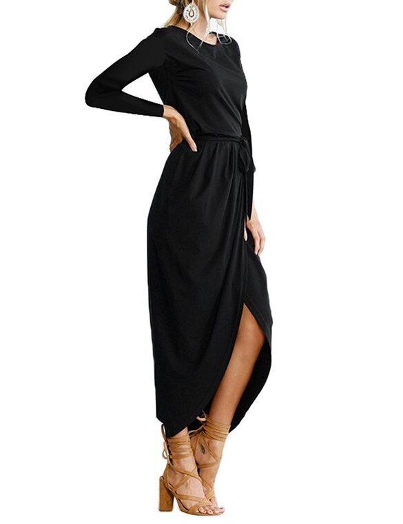 アマゾンAliExpress秋と冬のファッションセールヨーロッパとアメリカンスタイルの新しい無地の長袖ドレストレンディな女性良質 ロング オータム 秋物 ウィンター 冬物 ソリッドカラー ヨーロピアン 6733053009078735