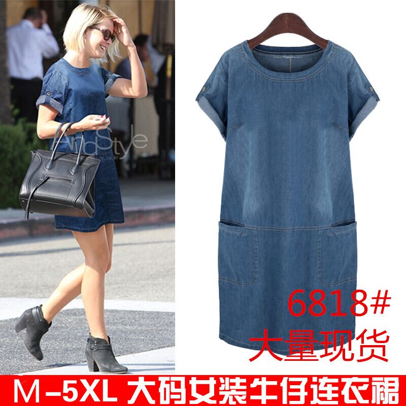 新しいヨーロッパとアメリカンスタイルのプルオーバープラスファットプラスサイズの婦人服ファットMM薄いデニムドレスを販売する夏のファッション 大きめサイズ サマー 夏物 ヨーロピアン 6733020950413406