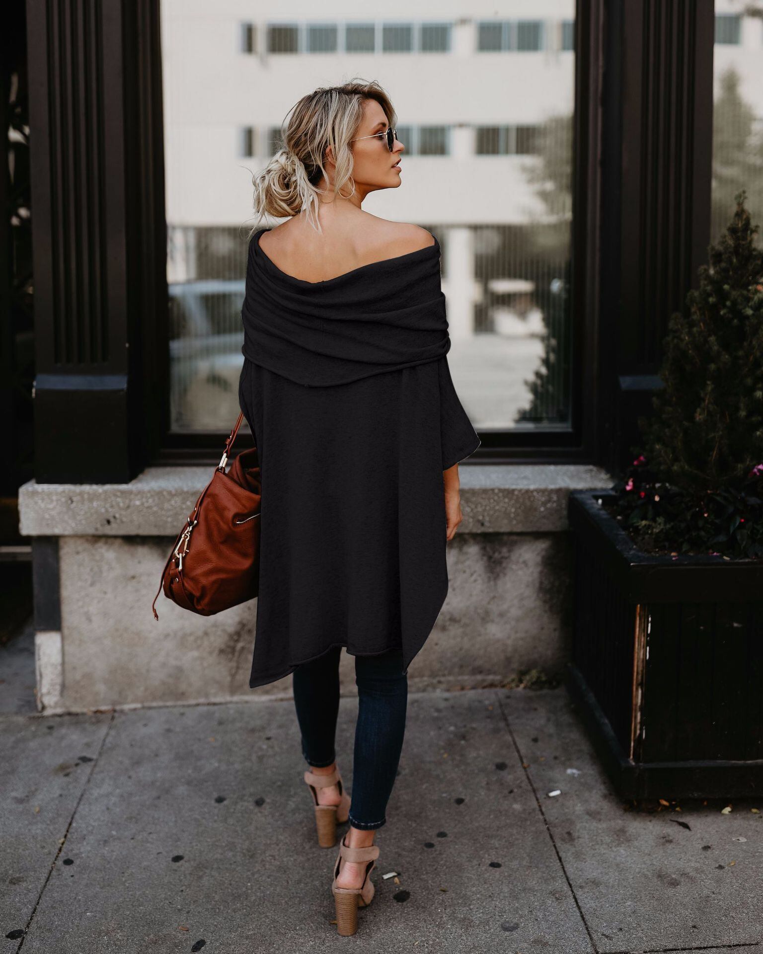 春、秋、冬の新しいヨーロッパとアメリカの人気のオフショルダートップスルーズラージサイズTシャツ不規則な裾のオフショルダーシャツナイトクラブ 大きめサイズ スプリング 春物 オータム 秋物 ウィンター 冬物 ヨーロピアン 6733034189096665
