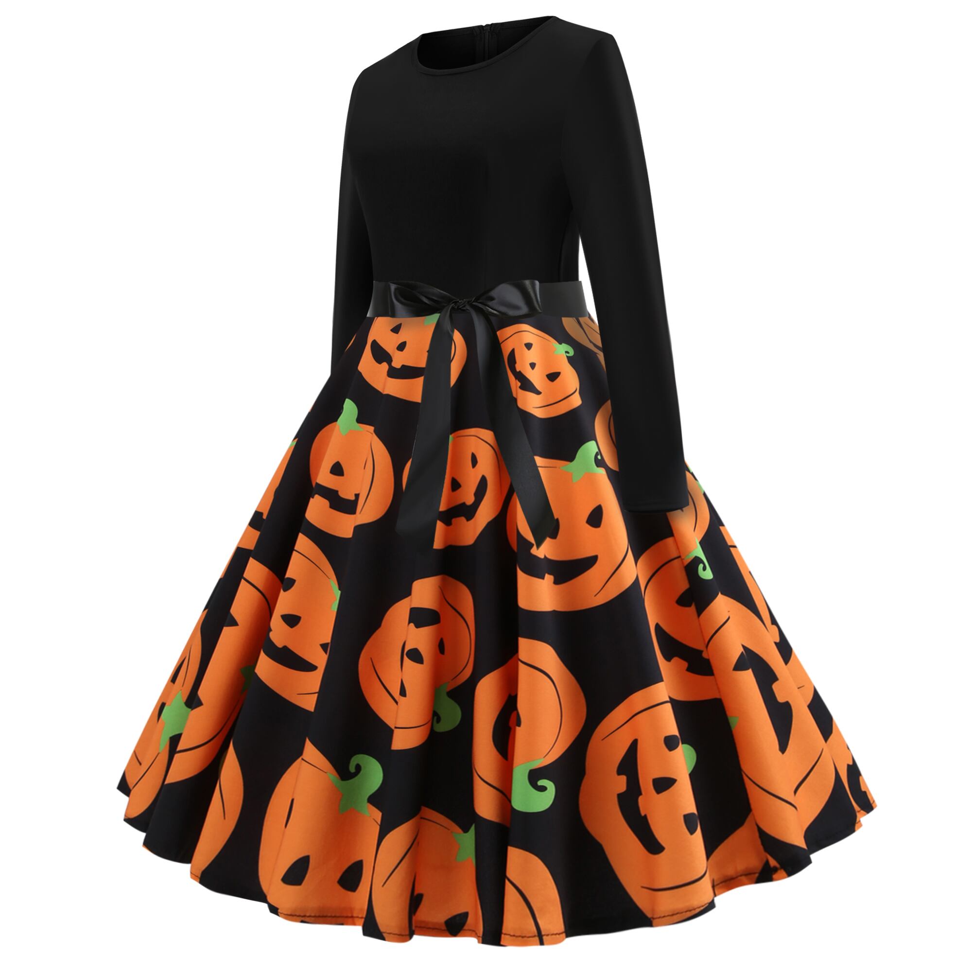 ユアントンハイウエスト春冬ファッション新作プリントステッチ長袖大スイングワンピースでリボンを送る ハイウェスト ロング スプリング 春物 オータム 秋物 ウィンター 冬物 6733040806230950