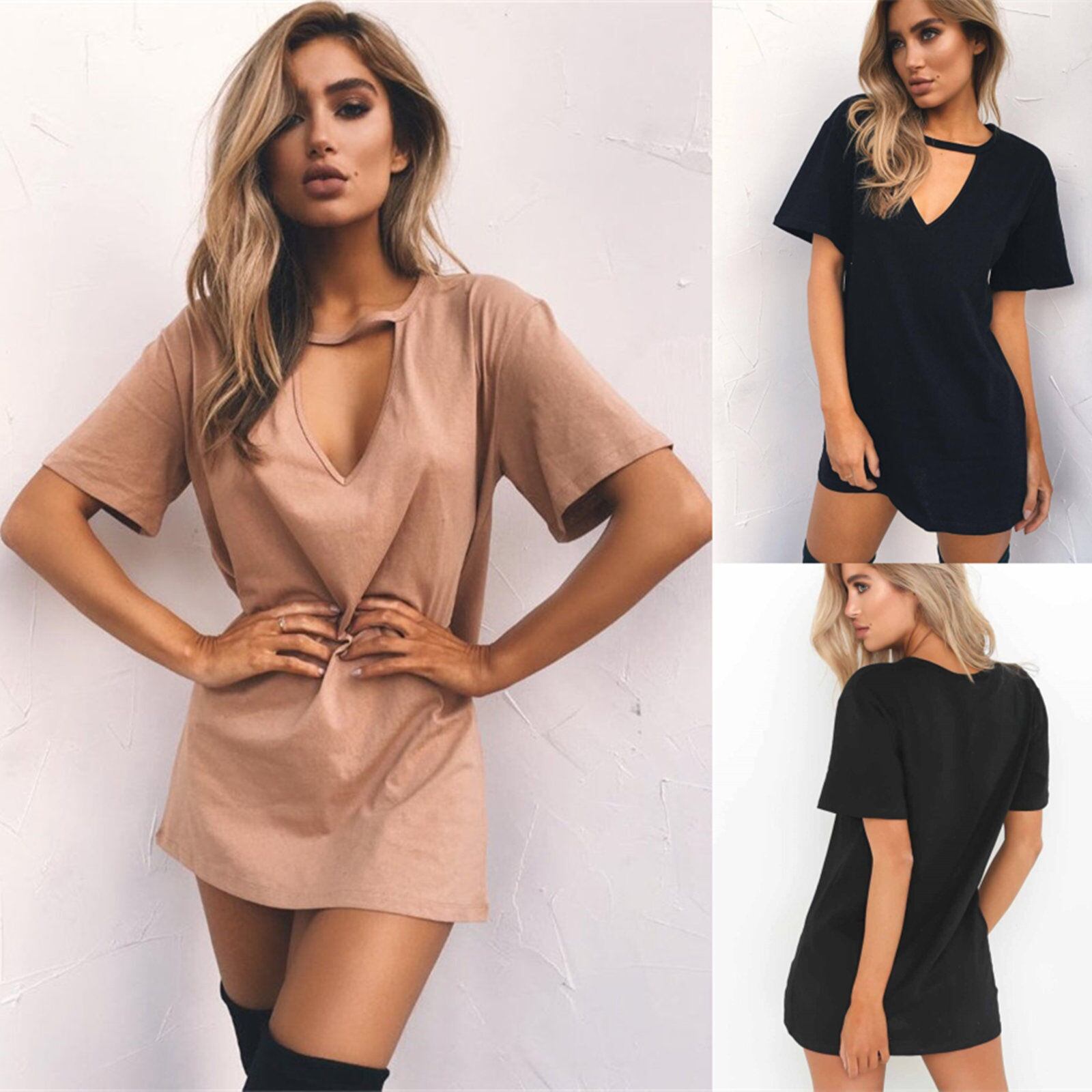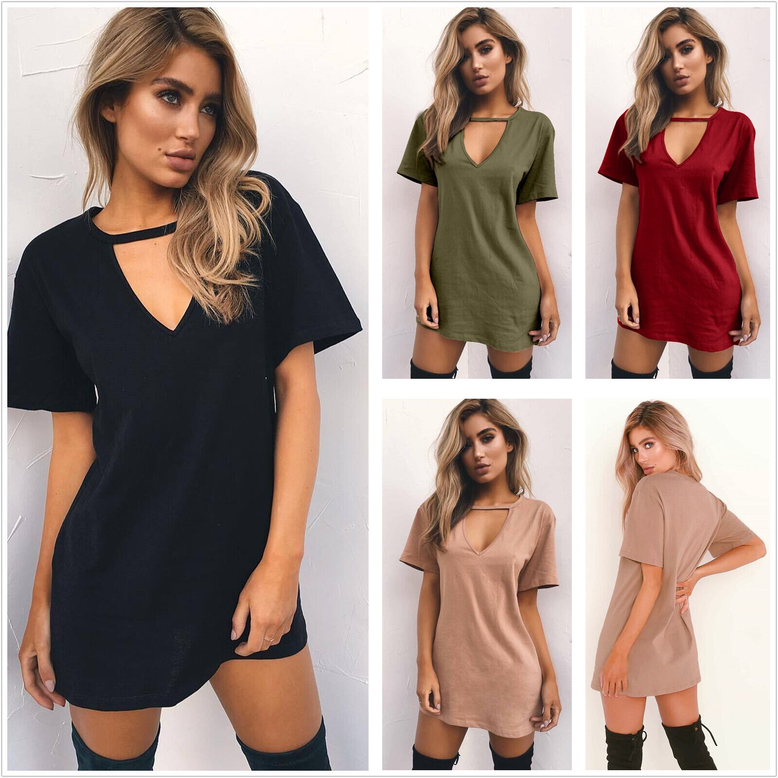 春と夏のアマゾンebaywish爆発スタイルヨーロッパとアメリカのプルオーバー半袖カジュアルディープVTシャツルーズドレス女性の潮 スプリング 春物 サマー 夏物 ヨーロピアン 6733078302183959