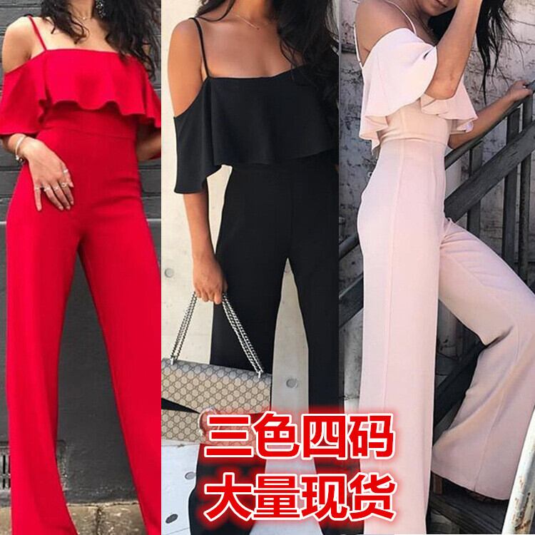 AliExpresseBay大型サマーファッション販売薄いワイドレッグカジュアルサスペンダージャンプスーツジャンプスーツ 大きめサイズ 夏物 6733089782684721
