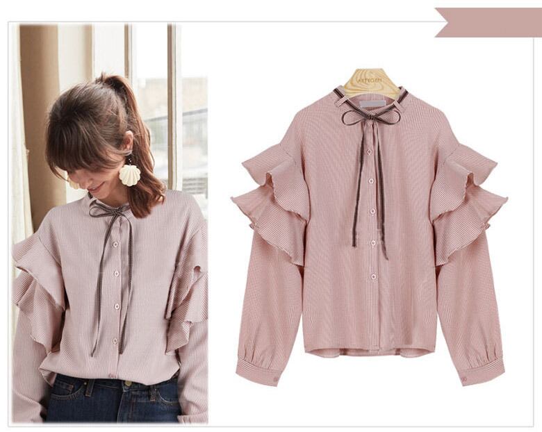 ヨーロッパの駅AliExpress春と夏の新しいVネックフリルシャツワイルドベルスリーブシャツボトミングシャツ女性 スプリング 春物 サマー 夏物 ヨーロピアン 6733051992606160