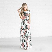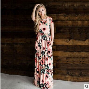 夏AliExpressEBAYヨーロッパとアメリカンスタイルのファッション長袖プルオーバー半袖ドレスハイウエストプリントラージスイングドレス ハイウェスト ロング サマー 夏物 ヨーロピアン 6733020800484222