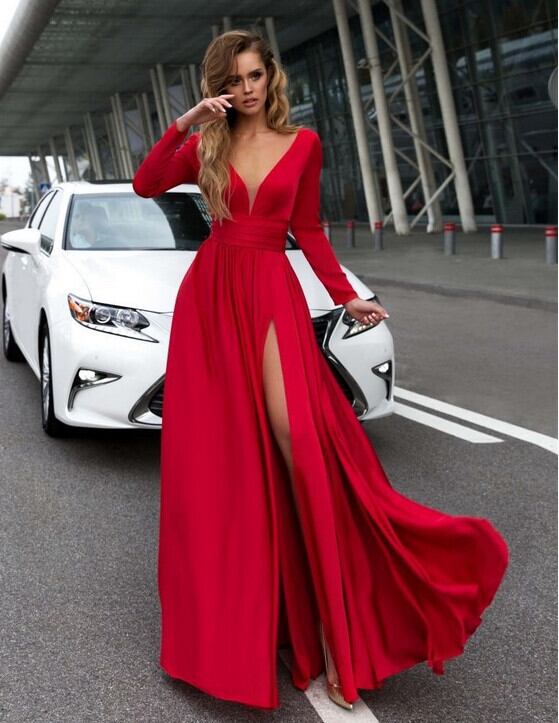 たるみのない新しいセクシーなディープV長袖ドレスドレス女性のトレンディな生地を販売するヨーロッパとアメリカンスタイルのプルオーバーステッチ ロング ヨーロピアン 6733035400669864