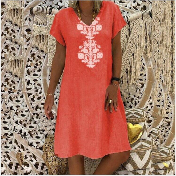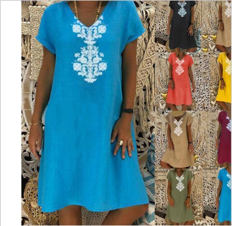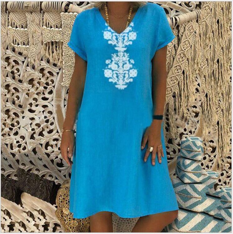 AliExpressのヨーロッパとアメリカンスタイルのプルオーバースカートサマーファッション半袖プリントエスニックスタイルVネックドレス婦人服 夏物 ヨーロピアン 6733013720111598