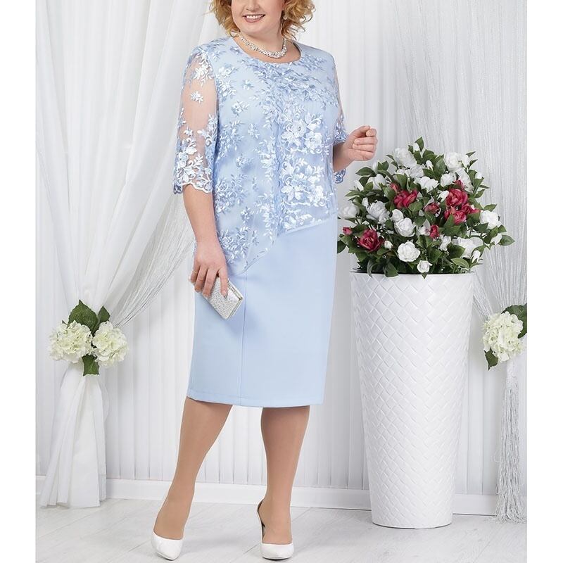 AliExpressサマーファッションレースステッチフェイクツーピースファットMMラージサイズレディーストップミドルスリーブドレスドレス 大きめサイズ 夏物 6733065751601985