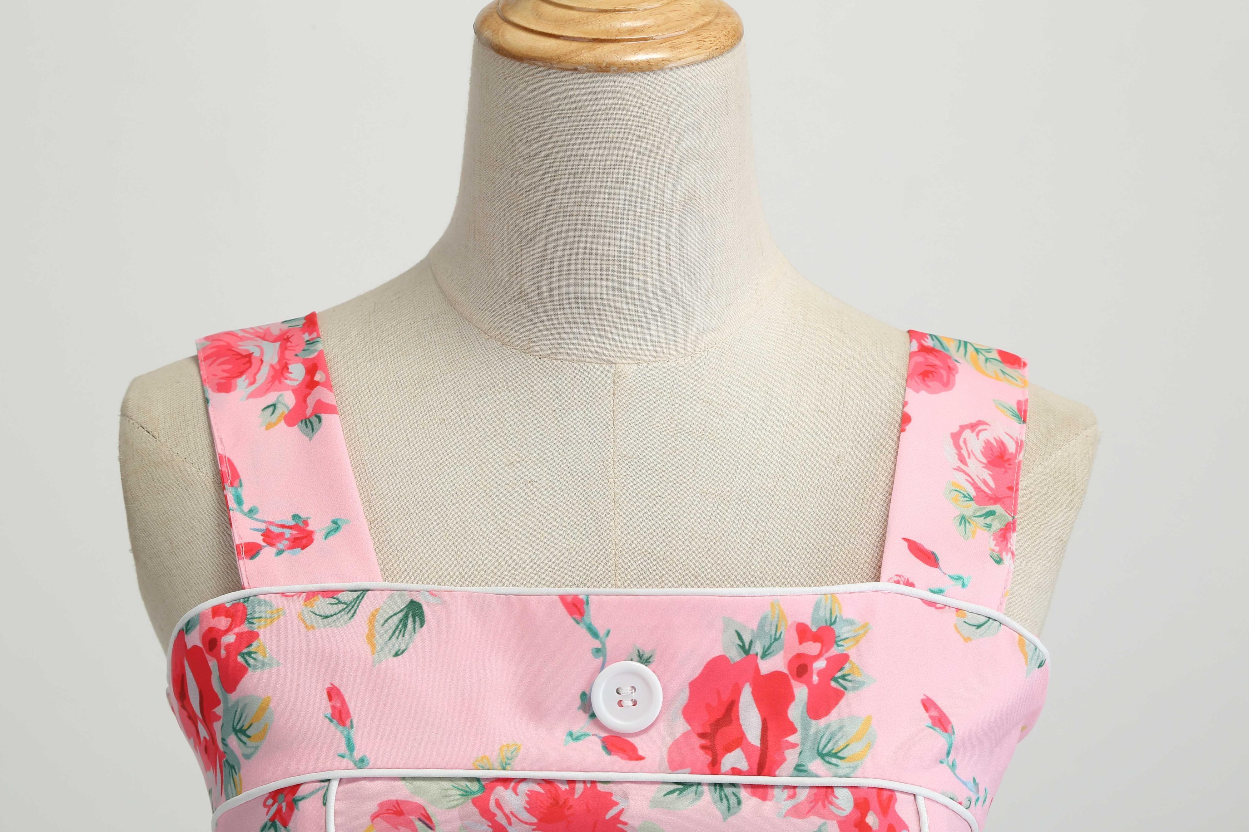 2019サマーイービーアマゾンセールヨーロッパとアメリカンスタイルの女性のレトロなプリントの大きなスイングスカートサスペンダードレス 夏物 ヨーロピアン 6733023024182778