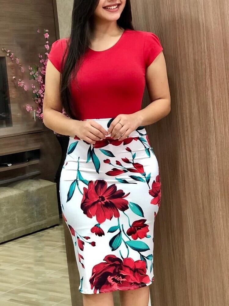国境を越えた願いアマゾンヨーロッパとアメリカのプルオーバー新しい夏ヨーロッパとアメリカのカラーマッチングフラワーヒップドレスプラスサイズの婦人服 大きめサイズ サマー 夏物 フラワーデザイン 6733091562501262