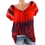 アマゾンサマーセクシートップVネックプリントレース半袖Tシャツトレンディな女性 ショート ハーフスリーブ 夏物 673307140173994