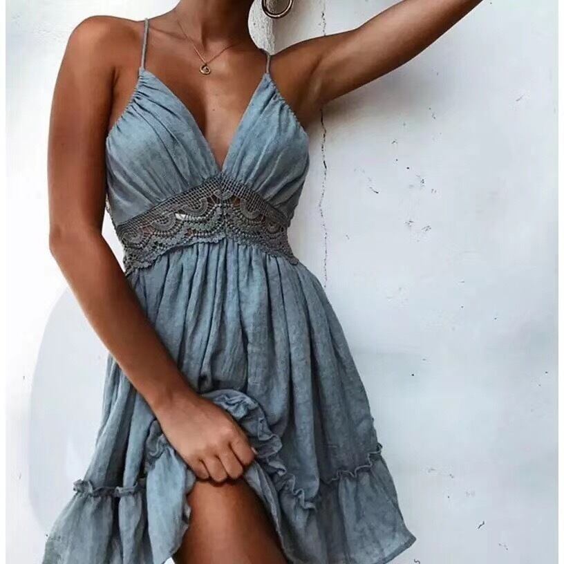 ヨーロッパとアメリカのスタイルバリバケーションスタイル包帯プルオーバービーチスカートオープンバックレース中空美しいサスペンダードレス女性 ヨーロピアン 6733011625356982