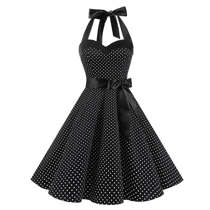 AliExpressアマゾンヨーロッパとアメリカンスタイルの春と夏のヘップバーンスタイルのニューウェーブポイントノースリーブスリムドレスレトロビッグスイングスカート スプリング 春物 サマー 夏物 ヨーロピアン 6733046286365129