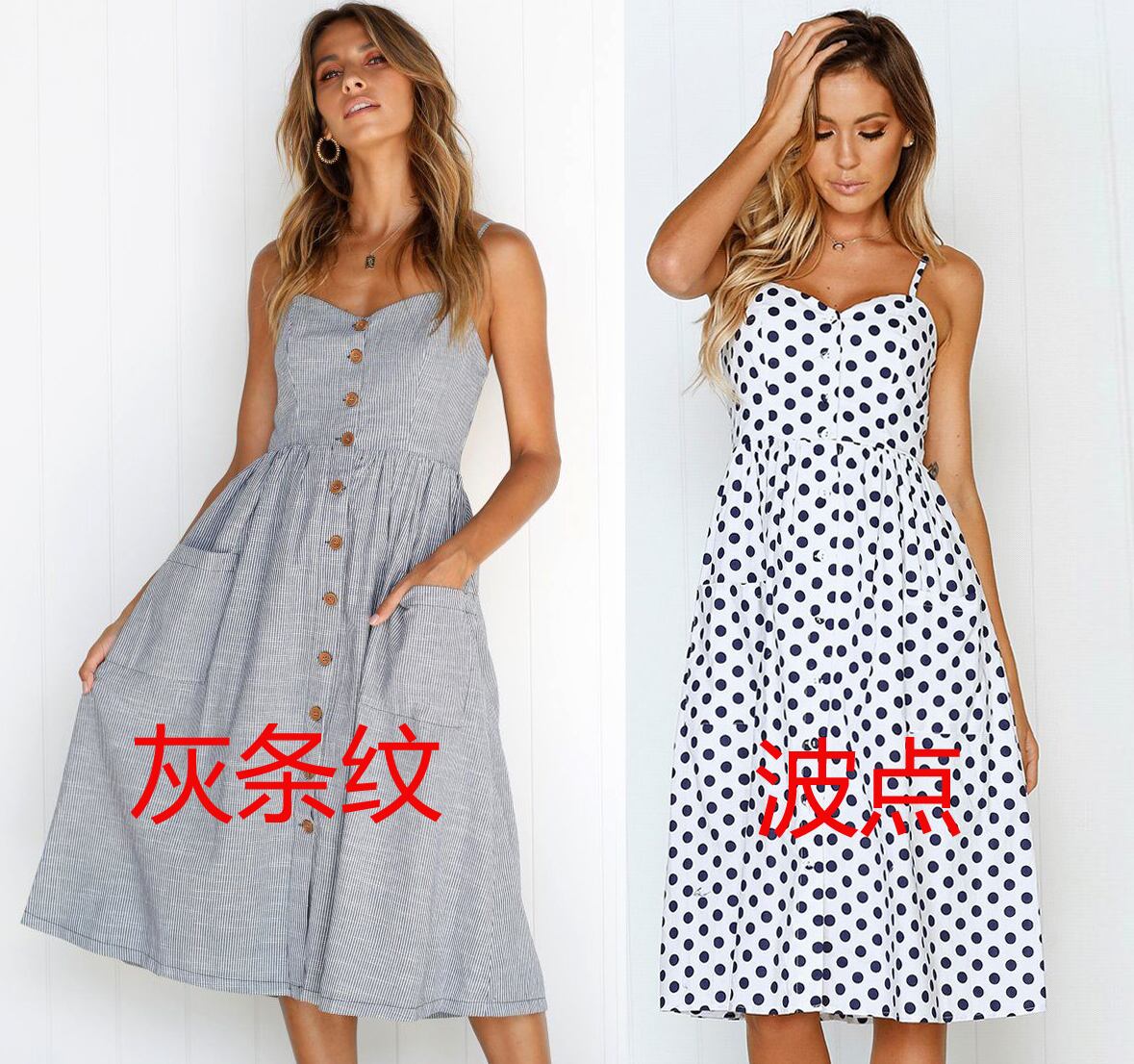 女性の夏のファッション新しいヨーロッパとアメリカンスタイルのステッチ新鮮な風弾性バスト大ポケット無地サスペンダーワンピーススカート エラスティック 伸縮 サマー 夏物 ソリッドカラー ヨーロピアン 6733020012796398