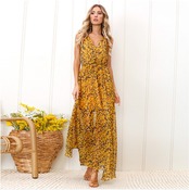 夏の新しいヨーロッパとアメリカのアマゾンセクシーサスペンダーディープVネックヒョウ柄ロングスカートトレンディな女性S〜XL。 サマー 夏物 ヨーロピアン 6733053731663397