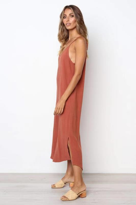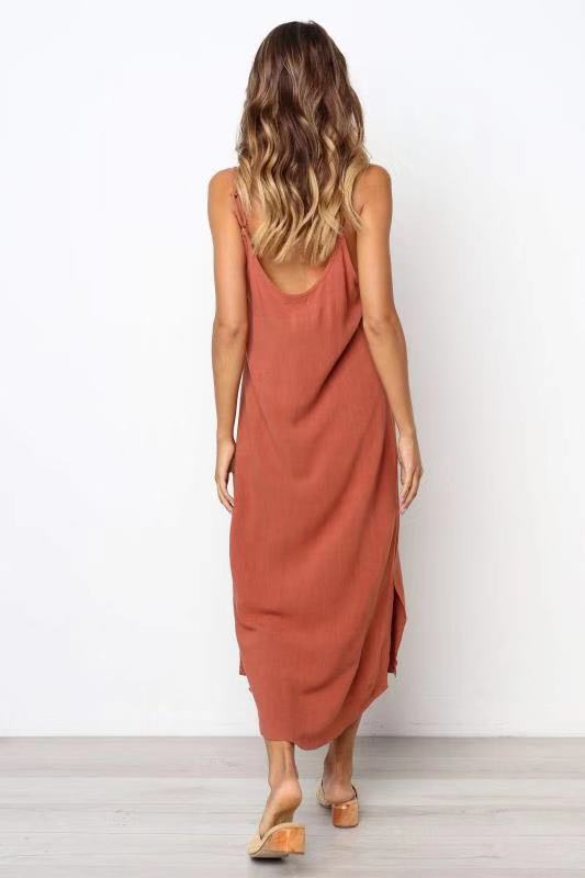 AliExpressebayアマゾン春と夏のファッション新しいファッションカジュアルVネック無地サスペンダースカートトレンディな女性 スプリング 春物 サマー 夏物 ソリッドカラー 673309734890453