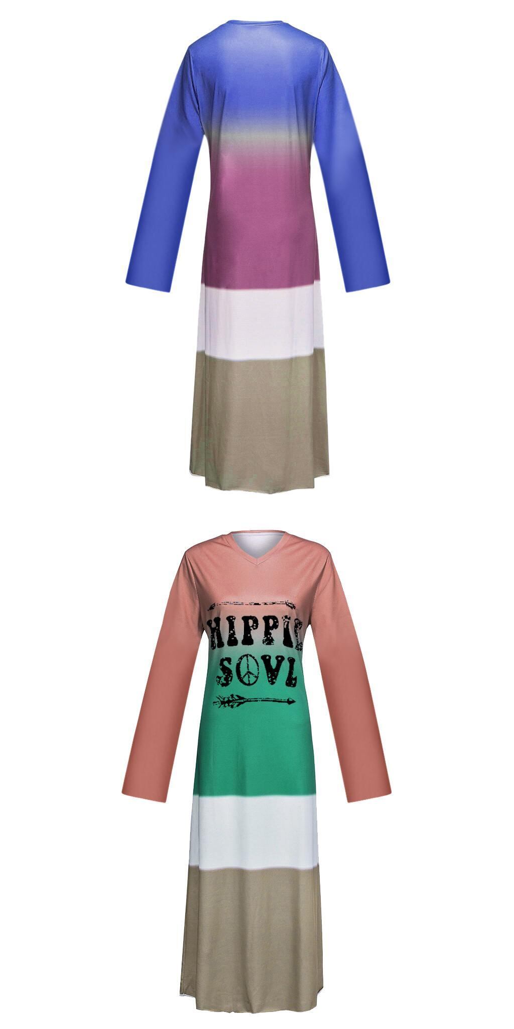 春、秋、冬のファッション新しいヨーロッパとアメリカのストリート婦人服AliExpressサブコードグラデーションカラーVネック長袖ロングドレス スプリング 春物 オータム 秋物 ウィンター 冬物 ヨーロピアン 6733098868295655