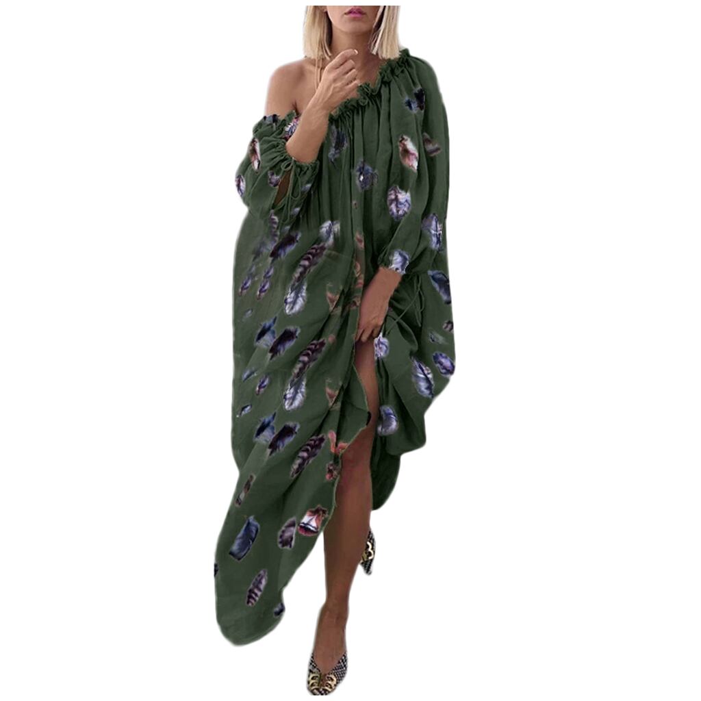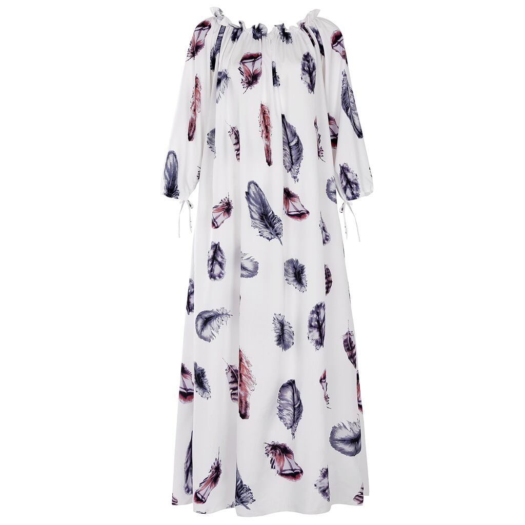 ヨーロッパとアメリカンスタイルのボヘミアンプルオーバー気質ファッションミッドスリーブフェザープリントセールセクシーなワンショルダーロングスカートトレンディな女性 ヨーロピアン 673307130032993