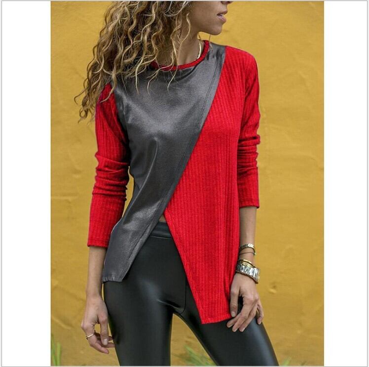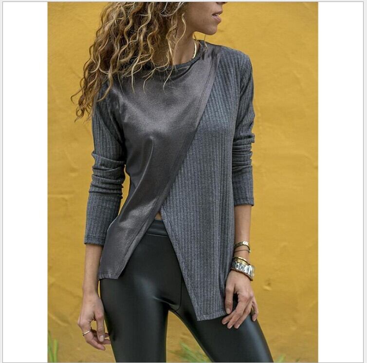 気質ステッチラウンドネック長袖女性のトップTシャツ女性の潮を販売する新しいヨーロッパとアメリカのスタイルのファッションを販売したい ロング Oネック ヨーロピアン 6733069716523341