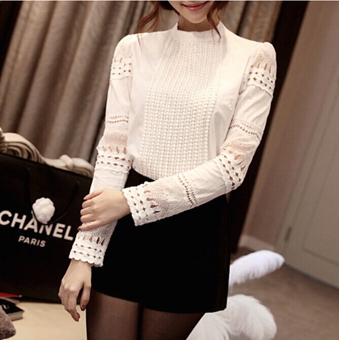 秋冬ファッションヨーロッパとアメリカの新しいエレガントな長袖ボトミングスリムコットンレースフックフラワー中空白いシャツの裏地 ロング ホワイト オータム 秋物 ウィンター 冬物 フラワーデザイン ヨーロピアン 6733080487308111