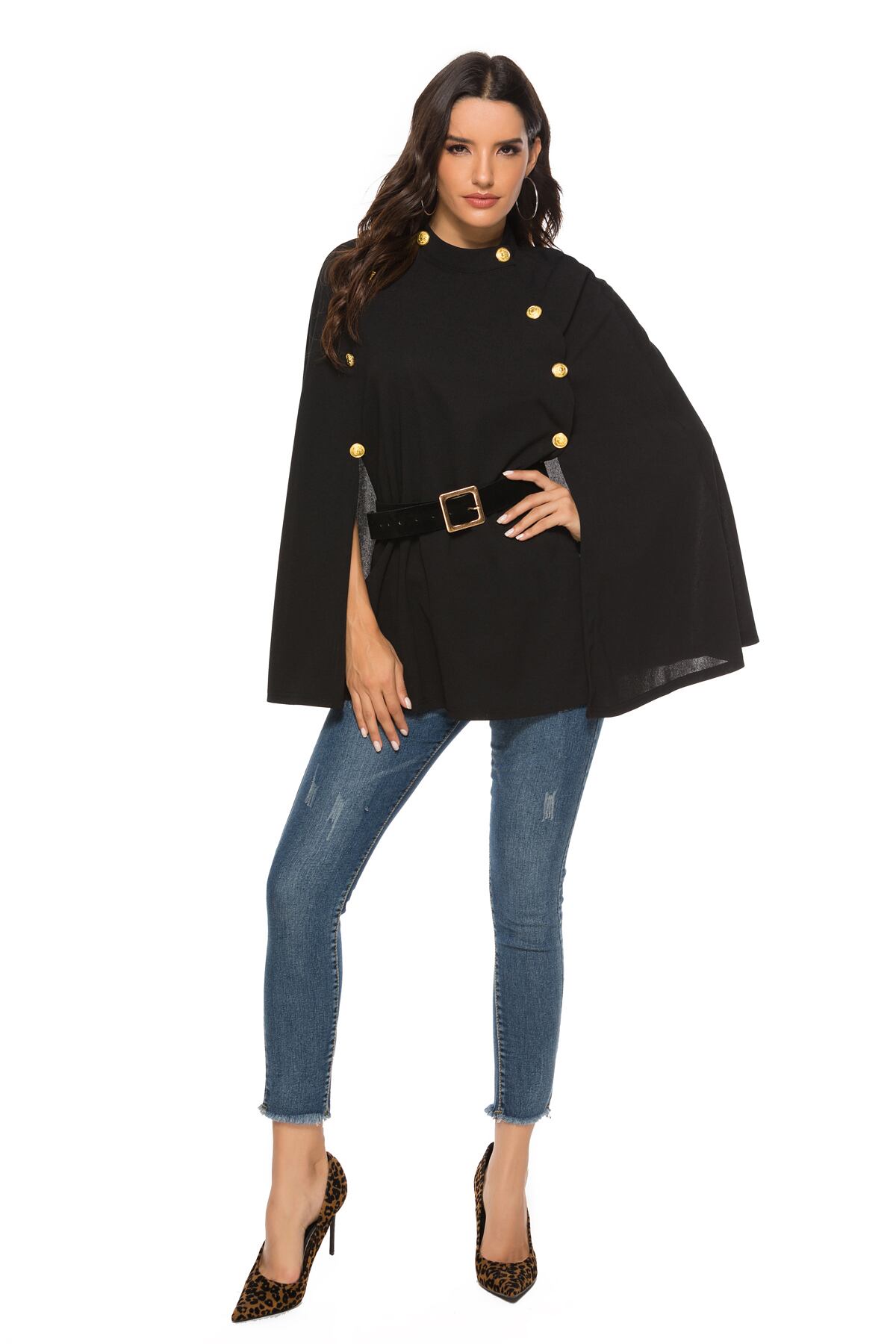 アマゾンヨーロッパとアメリカンスタイルのファッションセール英国のスタンドカラーボタン付きノースリーブ大スイングケープショールオールマッチトレンディな女性 ヨーロピアン 6733084610050804