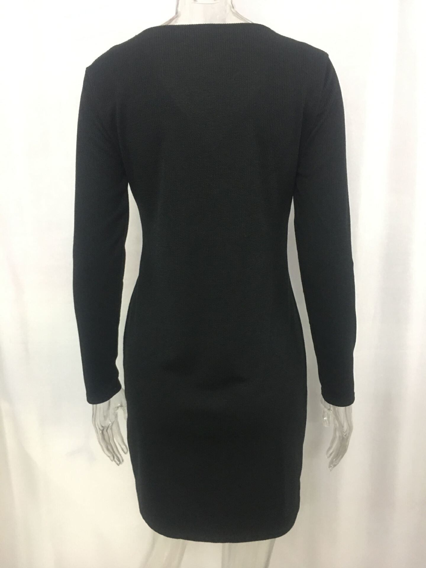 AliExpressの願い爆発スタイルのヨーロッパとアメリカンスタイルの春、秋、冬のスリムなスタイルのジッパーVネック長袖ピットドレスの女性 ロング スプリング 春物 オータム 秋物 ウィンター 冬物 ヨーロピアン 6733014908372472