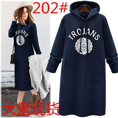 秋冬のヨーロピアンスタイルとアメリカンスタイルのストリートニューフード付きセーターレディースミドル丈シック&フリースボトミングシャツTシャツドレス オータム 秋物 ウィンター 冬物 6733024182318637